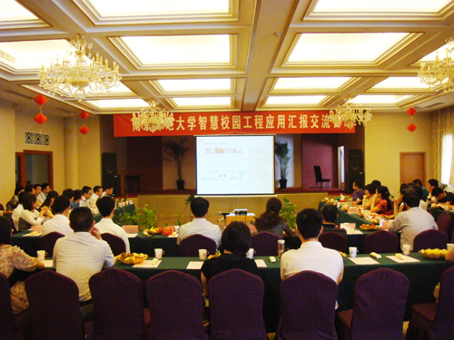 承建单位江苏金智教育信息技术有限公司和江苏南邮通信有限公司分别作了“智慧校园”应用系统建设和情况汇报及“智慧校园”感知工程建设和应用情况汇报。各职能部门负责人就本部门智慧校园一期使用情况作了介绍和交流,充分肯定了智慧校园一期工程的成果,也对一期工程提出了很多中肯的意见和建议,并对智慧校园二期的建设提出了设想。
