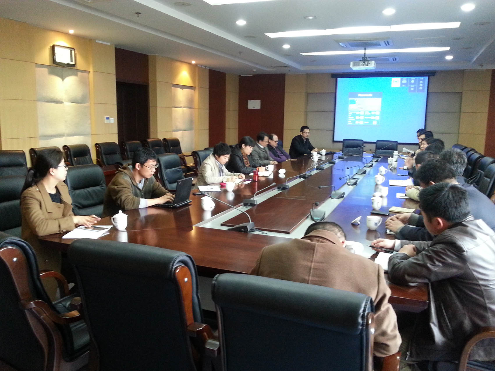 顾亦然主任介绍了我校智慧校园卡的发展规划、建设思路、整体解决方案等内容,我办规划建设科王海勇科长就我校智慧校园卡的统一公共服务平台、统一数据交换平台、统一身份认证平台、统一信息服务平台的运行机制和使用成效与马翠萍主任等展开了深入的交流和探讨。财务处副处长陆红琳介绍了我校智慧校园卡平台资金流状况。